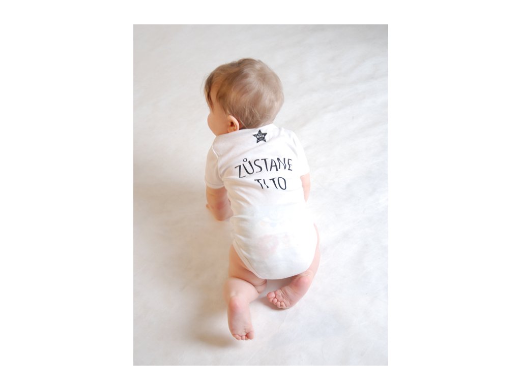 Body s krátkým rukávem, originální střih, autorský potisk, zapínání na tři patentky.