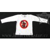 Tričko s dlouhým rukávem, originální střih, autorský červený potisk.